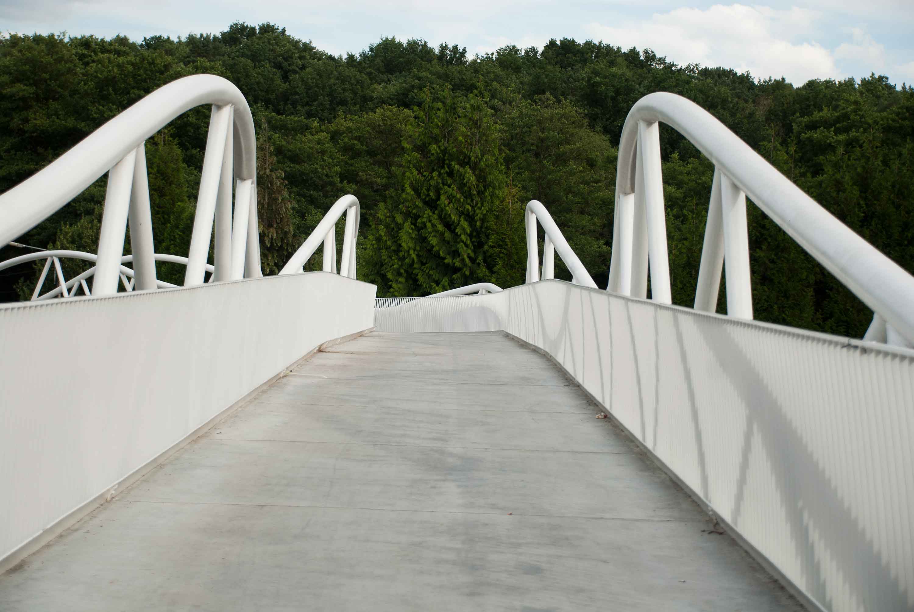 La passerelle blanche frappe surtout par son aspect ondoyant. Elle ondule au-dessus de la route et fait penser à des montagnes russes. Pourtant, cette forme particulière n’a pas été le point de départ de la réflexion. La passerelle est en réalité entrelacée parce que la surface disponible était assez limitée. Grâce à l’Architectural Engineering - ingénieurs et architectes réfléchissent ensemble pour allier design et technique - Arteum Architects, Grontmij et CSM ont abouti à un concept architectonique fort et un projet performant avec un coût du cycle de vie bien contrôlé.