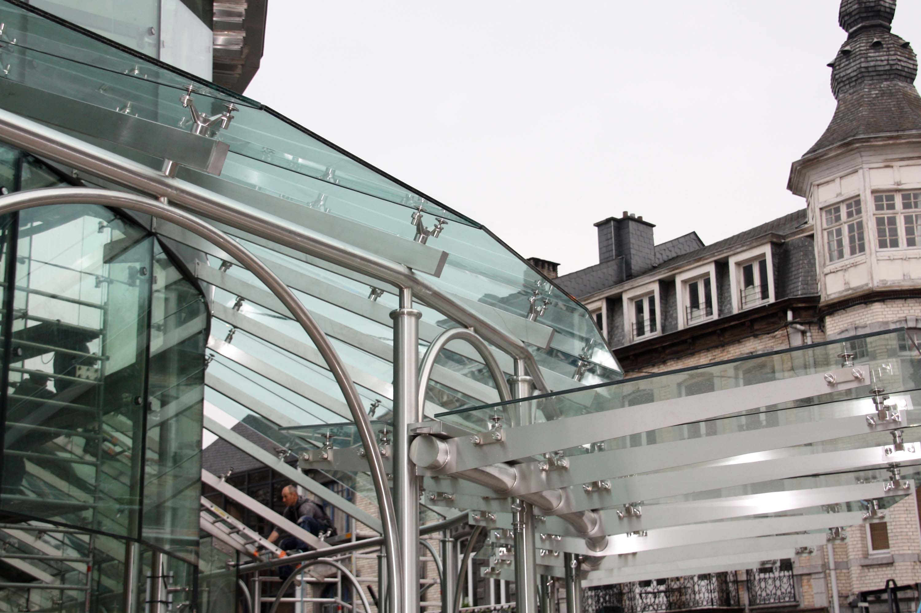 Le «Pouhon Piere le Grand» est la plus connue des sources de Spa et de sa région. Le Pavillon de la Source, de plan octogonal, est prolongé d’un Jardin d’Hiver rectangulaire. Outre les stucs et staffs intérieurs, les menuiseries originales, la reconstitution des mosaïques de sol ou la reconstitution de divers éléments décoratifs,  la restauration a porté sur la mise en valeur d’une charpente remarquable. Le projet comprend aussi la reconstitution de la rotonde vitrée détruite en 1948, ainsi que du déambulatoire vitré qui le prolongeait. Sachant qu’il ne subsistait aucun élément original susceptible d’être réutilisé ou même recopié,  l’auteur de projet a opté pour une composition contemporaine. Constituées de volumes de vitrage de grandes dimension posés «à facettes», la paroi verticale en forme de demi-cylindre s’appuie sur une structure en tubes d’acier inoxydable. La toiture vitrée repose sur une sablière en tube d’acier inox laquelle s’appuie sur des colonnes du même matériau. Les colonnes sont reliées entre elles par des arcs en plein cintre.