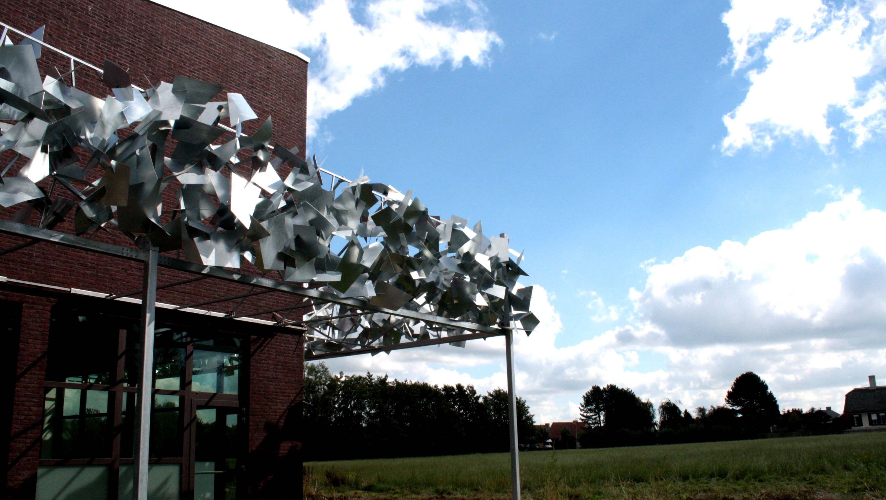 Voor dit kunstproject besloot het OCMW van Zedelgem het aangename aan het nuttige te koppelen: de kunstige constructie die voor de gevel van het OCMW geplaatst werd, doet ook dienst als gedeeltelijke zonwering.