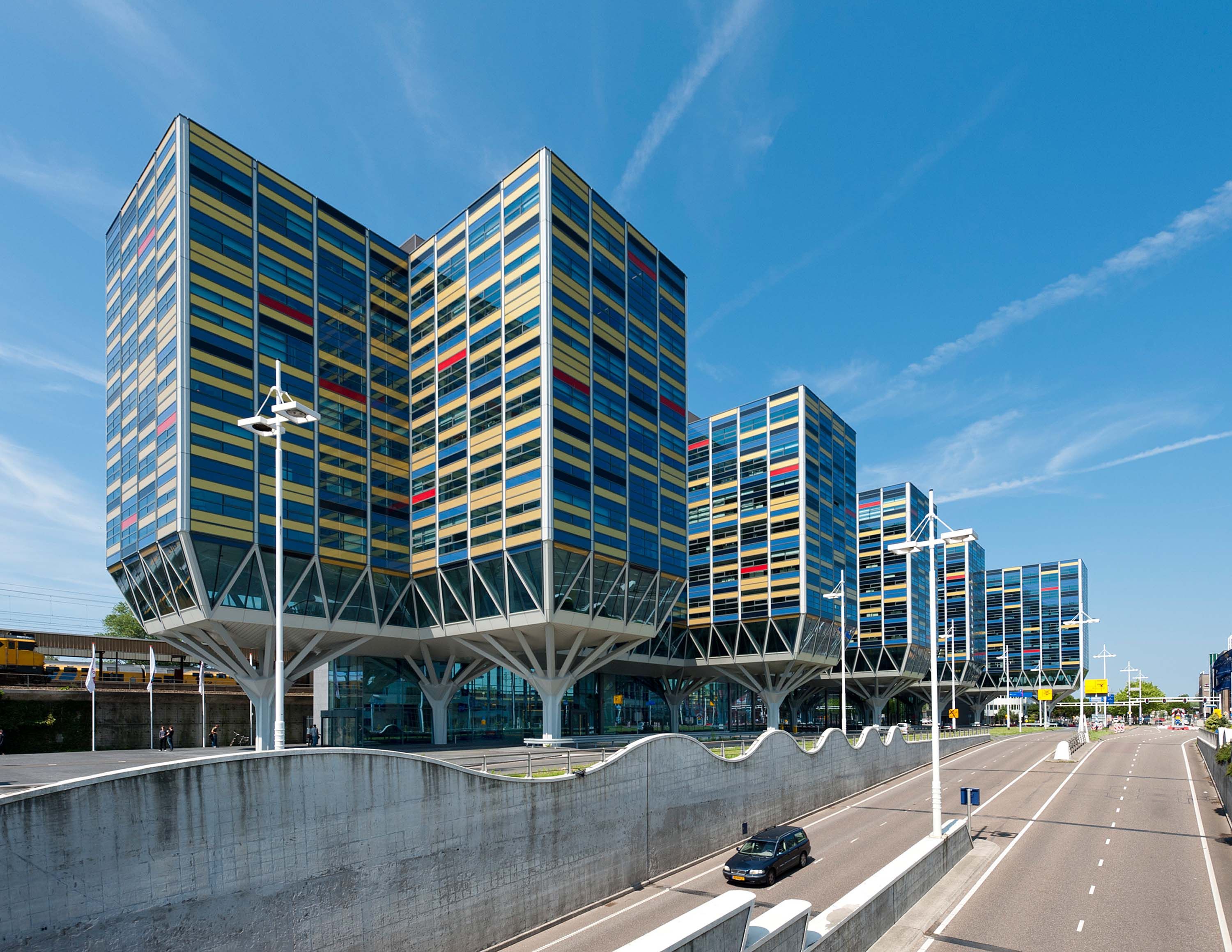 Het kantoorgebouw ‘Le Carrefour’ van Achmea vormt een landmark   in Leiden. De kleurrijke gevel verwijst naar Theo Van Doesburg die in de jaren ’20 van vorige eeuw in Leiden de kunstbeweging ‘De Stijl’ oprichtte.