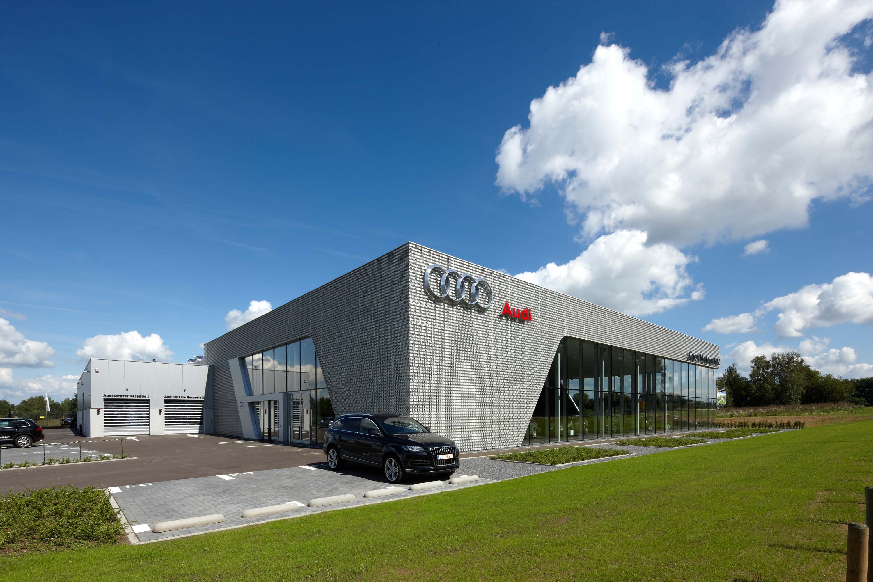 De Audi-showroom van Coox Motors werd ontworpen volgens het Terminalconcept van Audi, een visionaire architectuur met een design uit meerdere lagen. Er werd gebruik gemaakt van een stalen draagstructuur en stalen gevel (Alu-geperforeerde plaat) met honingraatstructuur. De grote glaspartij maakt de strakke look compleet. De eyecatcher in het interieur is de gebogen wand, bekleed met zwart steentapijt.