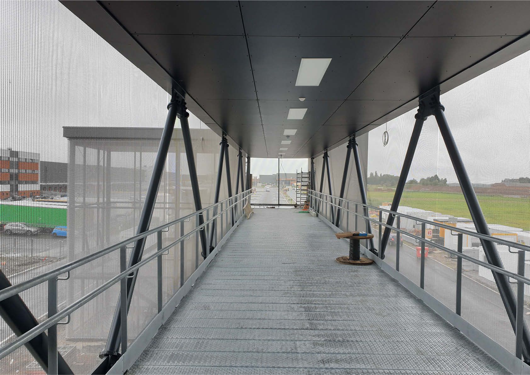Na specifiek onderzoek bleek S275-staal de meest economische oplossing te zijn. De hele structuur weegt 1450 ton – lees: circa 38 kg/m² – waardoor het gebruik van funderingspalen niet nodig was. Ook voor de realisatie van verschillende andere elementen is staal gebruikt: de zijluifel van 8.000 m², de passerelle, de ‘acces core’ en de gevelbekleding. Deze laatste bestaat uit sandwichpanelen die op een metalen frame bevestigd zijn.