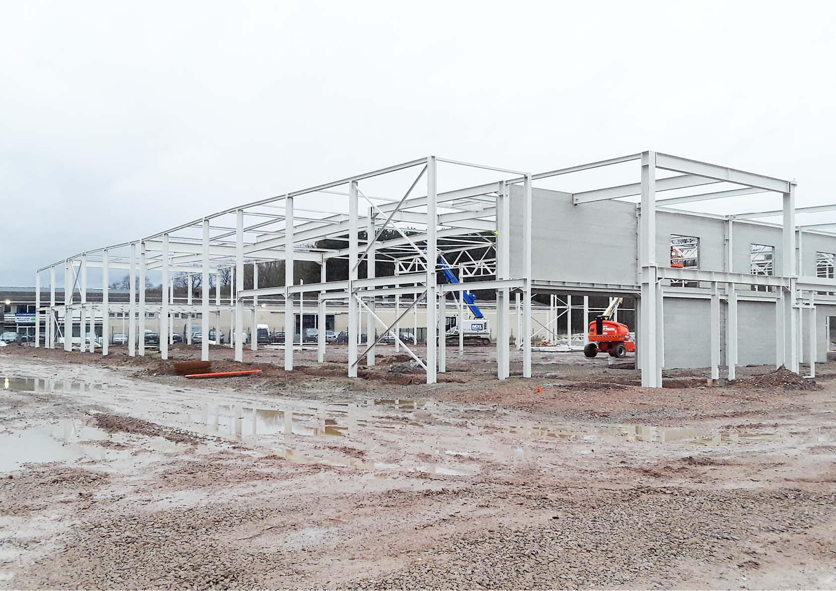 Aangezien de timing erg strak was en het uitvoeringstempo bijgevolg zeer hoog moest liggen, werd er geopteerd voor een volledige staalstructuur voor zowel de tussenvloeren als de dakconstructie (vakwerkspanten, volle liggers …). Daarnaast is de gevel bekleed met 2150 m² geïsoleerde stalen sandwichpanelen en zijn er tevens 4500 m² geprofileerde stalen dakplaten geïnstalleerd. In totaal is er maar liefst 215 ton staal verwerkt in het gebouw.