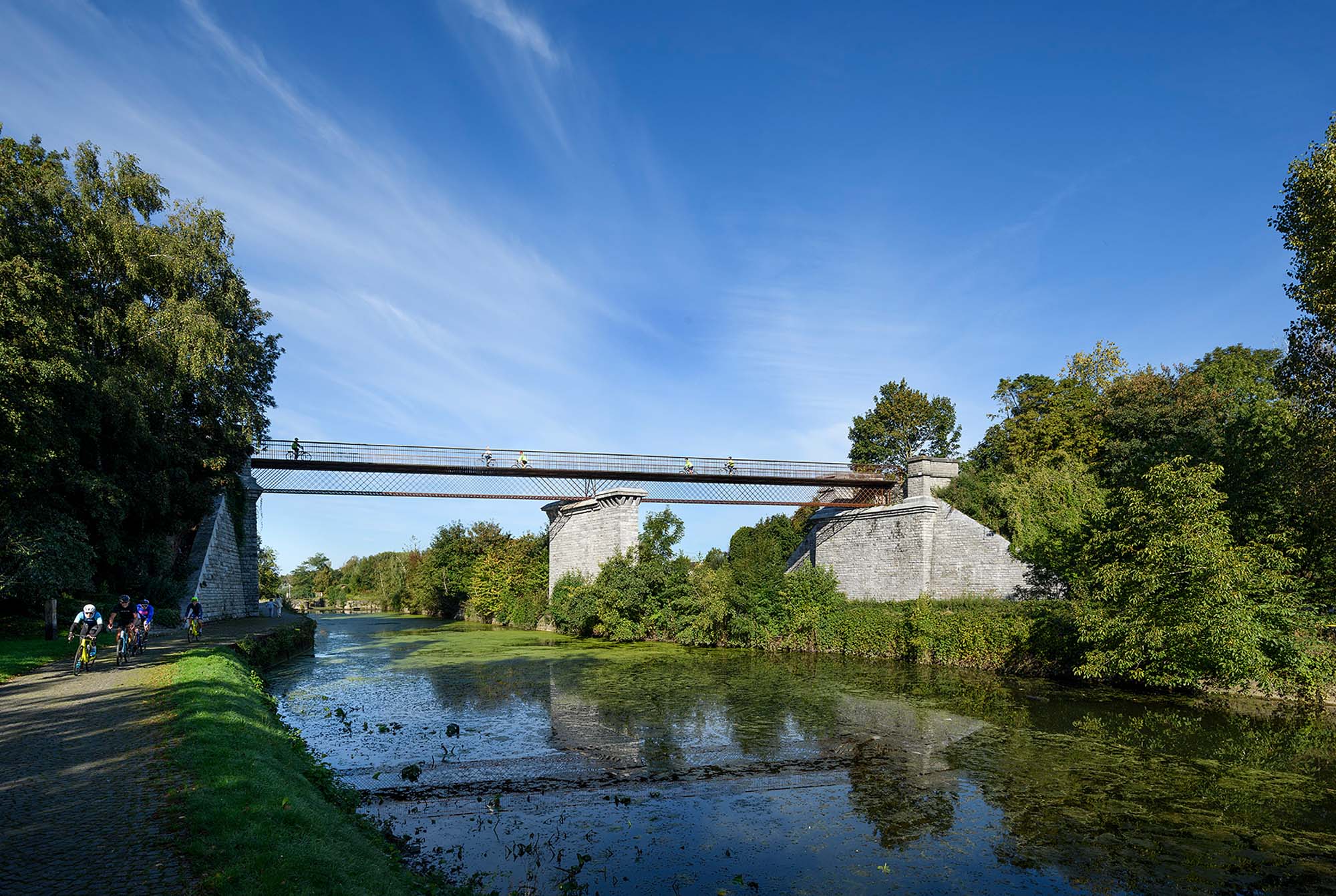 De passerelle in Arquennes overspant de Samme en verbindt twee delen van RAVeL-lijn 141. (Réseau Autonome de Voies Lentes - Autonoom netwerk van trage wegen)